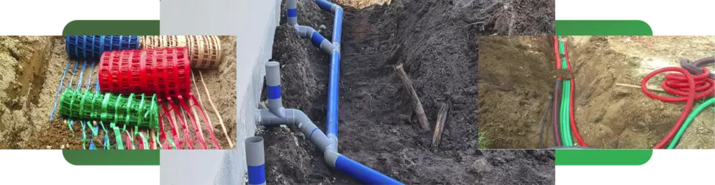 Les adductions consistent à mettre en tranchée toutes les gaines et tuyaux concernant l’alimentation en énergie de votre maison (EAU, EDF, PTT, GAZ). Notre domaine d’intervention est d’ordre privatif, c’est à dire que nous travaillons depuis votre maison jusqu’à vos différents compteurs posés en limite de propriété.